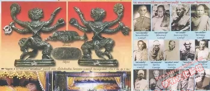 泰国南部高僧龙波lea(列) 佛历2521年/公历1978年第一期神猴哈努曼立尊,师傅曾向14位大德高僧学习过佛法,如灭魔刀全泰第一的龙波登、神兽崇迪龙波班、财佛龙波艮大师等等,师傅圆寂后至今金身不腐。这应是较早时期哈努曼立尊的代表作之一,近代很多师傅督造哈努曼立尊都有参照这一期的法相,如诸位所见,这才是真正的第一期,美国总统奥巴马访问泰国时曾受赠一枚,由于截图模糊,虽无法断定就是此期,但在年份上此造像出现的最早时间应该就是如上所见了。品相上等,配以手工定制的玻璃雕花防水外壳(目前泰国亚克力外壳的最高工艺),主效:提升斗志、权势、威望、助事业、挡险,适职场或管理人士,泰有文化只出原年原版之真品圣物,待主。 WeChat/微信:taiguofopai8 |